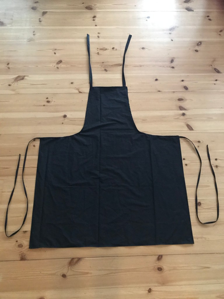 Päätin ottaa kuvan essusta ilman taskua, että taskun kanssa. Niin kuin siis kuvasta näkyy, essu on musta, mutta tasku on itsessään keltainen. Mielestäni tasku sopi mainiosti essu väriin ja tekee essusta oikeasti mustan.