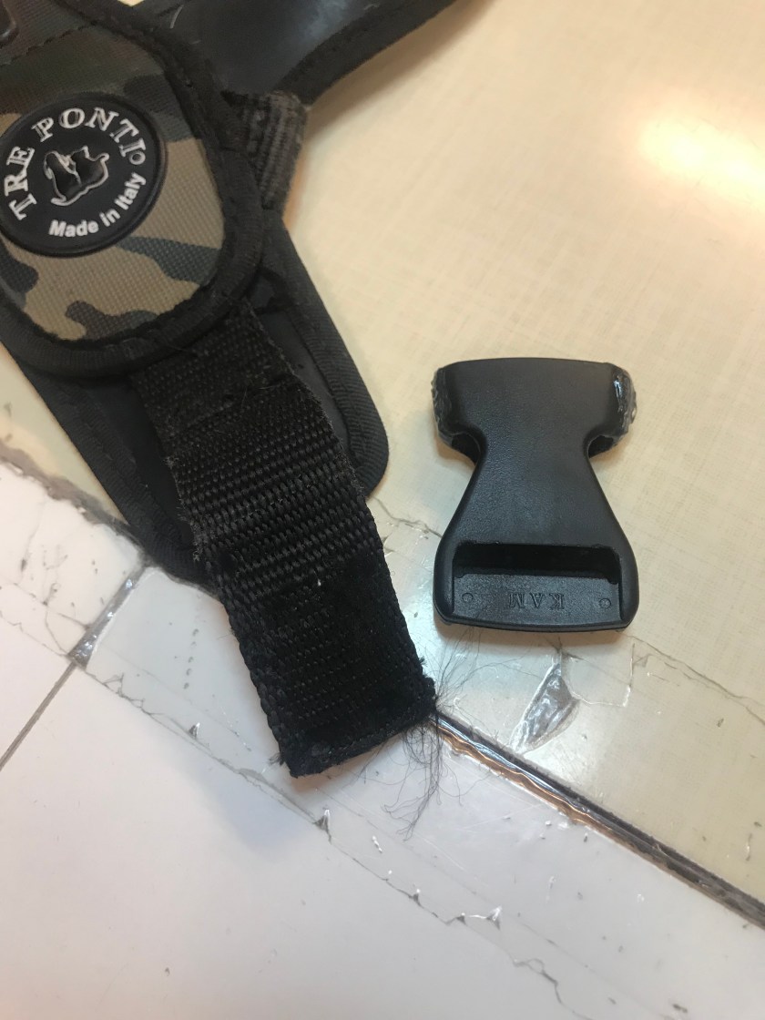 Hihnasolki oli tarkoitus irroittaa koiran kaulapannasta. Koira oli purrut hihnansoljen ihan rikki, joten se piti vaihtaa